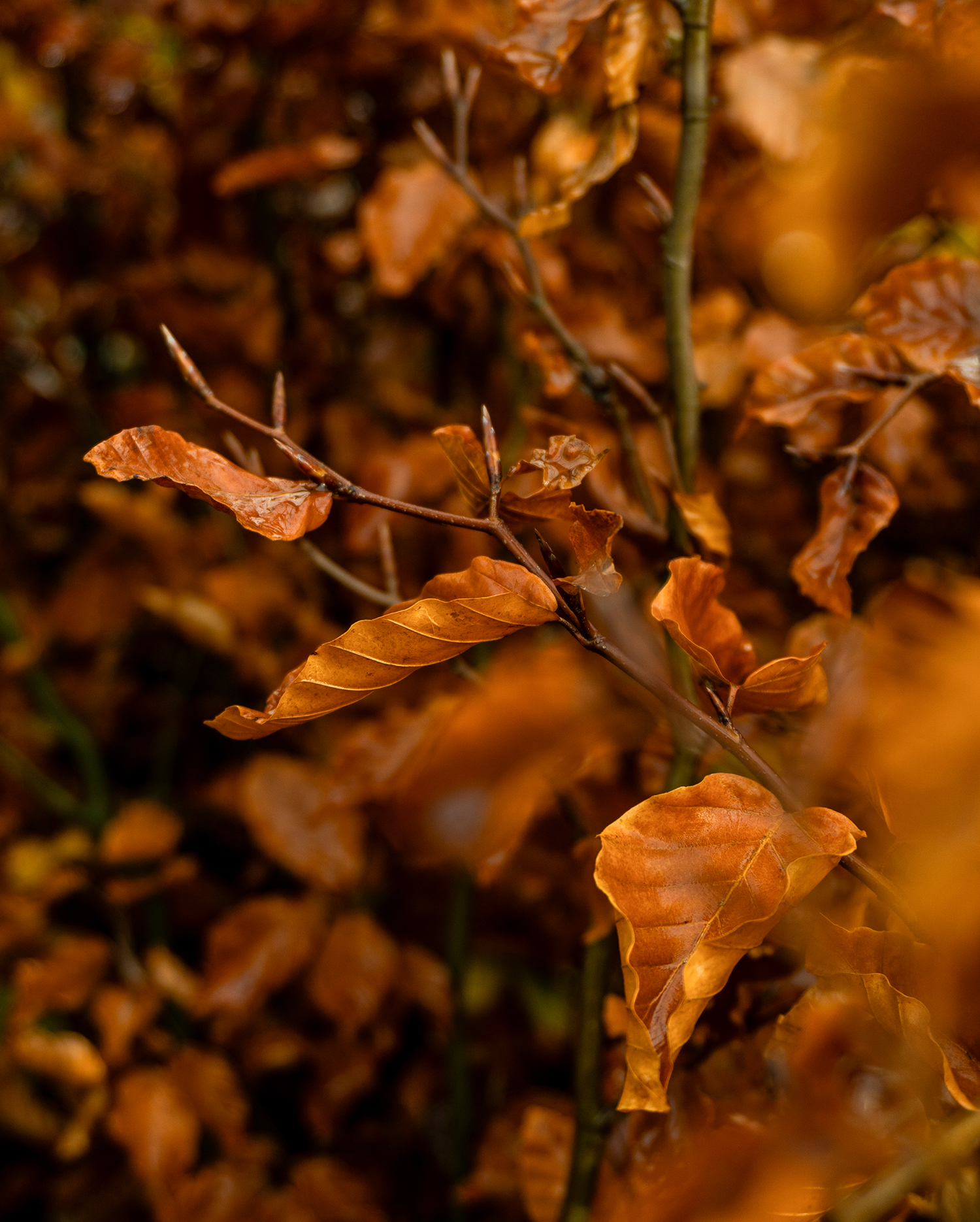 Some species also exhibit a phenomenon known as marcescence, where dead leaves remain attached to the tree throughout winter. European beech (Fagus sylvatica) is a classic example, with young trees or hedges often retaining brown, withered leaves until new growth pushes them off in spring. Marcescent leaves provide extended structural interest in winter landscapes, acting as windbreaks, adding textural contrast, and maintaining garden definition when most other deciduous trees have lost their foliage.